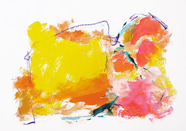 Das ist es: die größtmöglichen Bewegungen dieser Mitte spüre ich deutlich, die extremsten Schwingungen nach oben, nach unten. Was hinter mir ist, die Ein-Drücke, sind noch nicht ganz vergessen – auf der anderen Seite, das Unbekannte. Dort wird auf jeden Fall das Zurückgelegte in sich konzentriert, wissend, zur Ruhe gebracht sein. Noch bleibe ich in der Schwingung, der Hingabe, nicht immer furchtlos lasse ich los – es ist mein Rhythmus, meine Intensität.